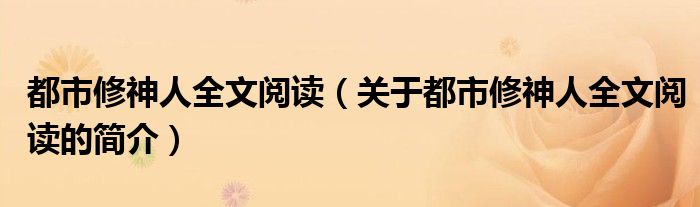 大家好,都市修神人全文閱讀,關于都市修神人全文閱讀的簡介很多人還不知道,現在讓我們一起來看看吧!