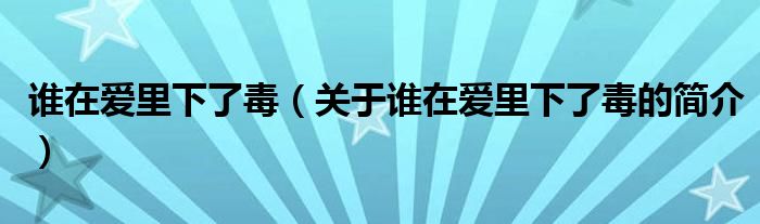 本文關于誰在愛里下了毒的簡介就講解完畢,希望對大家有所幫助。