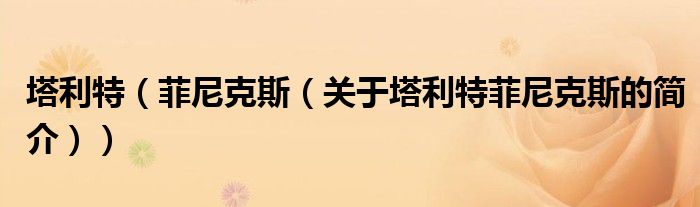 大家好,塔利特 菲尼克斯,關于塔利特 菲尼克斯的簡介很多人還不知道,現在讓我們一起來看看吧!