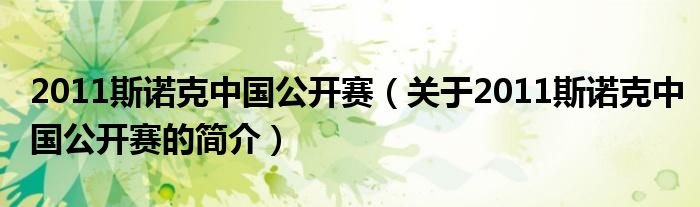 本文關于2011斯諾克中國公開賽的簡介就講解完畢,希望對大家有所幫助。