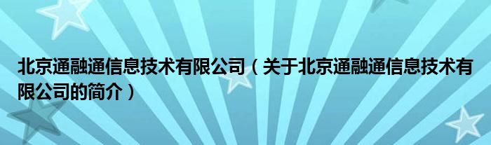 本文關于北京通融通信息技術有限公司的簡介就講解完畢,希望對大家有所幫助。