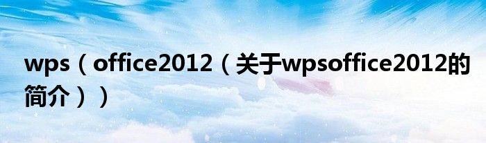 大家好,wps office 2012,關于wps office 2012的簡介很多人還不知道,現在讓我們一起來看看吧!