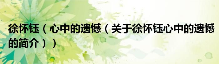 本文關(guān)于徐懷鈺 心中的遺憾的簡介就講解完畢,希望對大家有所幫助。
