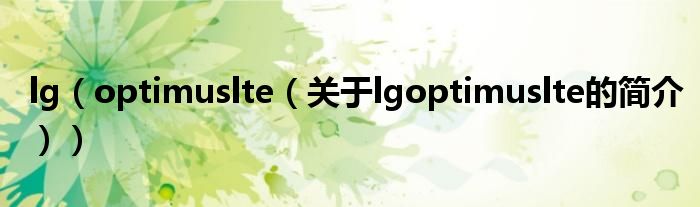 大家好,lg optimus lte,關(guān)于lg optimus lte的簡介很多人還不知道,現(xiàn)在讓我們一起來看看吧!