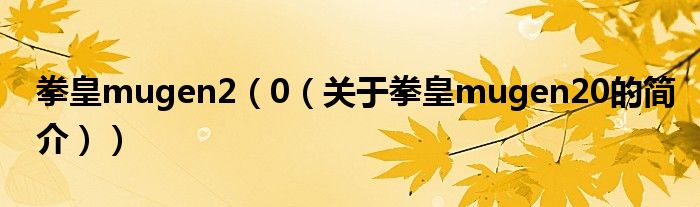 本文關于拳皇mugen2 0的簡介就講解完畢,希望對大家有所幫助。