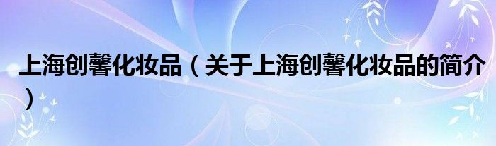 大家好,上海創馨化妝品,關于上海創馨化妝品的簡介很多人還不知道,現在讓我們一起來看看吧!