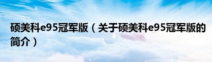 大家好,碩美科e95冠軍版,關于碩美科e95冠軍版的簡介很多人還不知道,現在讓我們一起來看看吧!