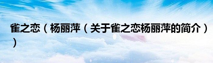 本文關于雀之戀 楊麗萍的簡介就講解完畢,希望對大家有所幫助。