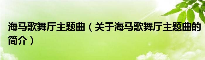 本文關(guān)于海馬歌舞廳主題曲的簡介就講解完畢,希望對大家有所幫助。