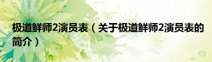 大家好,極道鮮師2演員表,關(guān)于極道鮮師2演員表的簡介很多人還不知道,現(xiàn)在讓我們一起來看看吧!