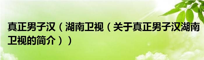 大家好,真正男子漢 湖南衛視,關于真正男子漢 湖南衛視的簡介很多人還不知道,現在讓我們一起來看看吧!