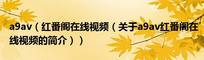 本文關(guān)于a9av 紅番閣在線(xiàn)視頻的簡(jiǎn)介就講解完畢,希望對(duì)大家有所幫助。