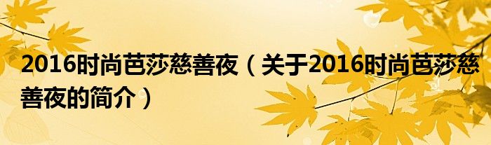 本文關于2016時尚芭莎慈善夜的簡介就講解完畢,希望對大家有所幫助。