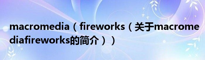 大家好,macromedia fireworks,關于macromedia fireworks的簡介很多人還不知道,現在讓我們一起來看看吧!