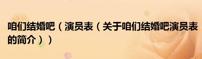 本文關于咱們結婚吧 演員表的簡介就講解完畢,希望對大家有所幫助。