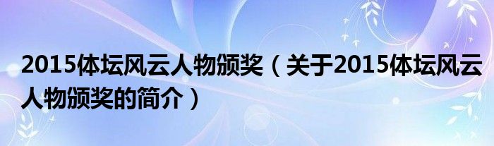 本文關于2015體壇風云人物頒獎的簡介就講解完畢,希望對大家有所幫助。