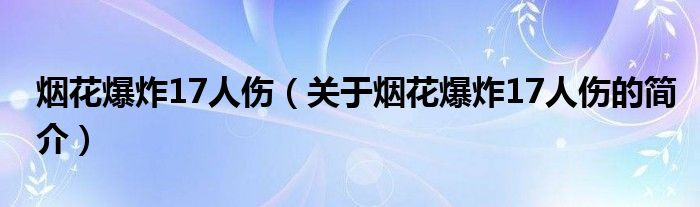 本文關(guān)于煙花爆炸17人傷的簡介就講解完畢,希望對大家有所幫助。