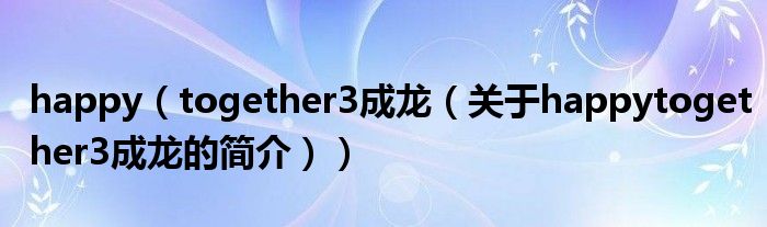 大家好,happy together3成龍,關于happy together3成龍的簡介很多人還不知道,現在讓我們一起來看看吧!