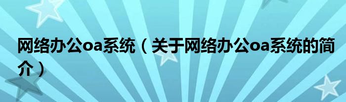 本文關于網絡辦公oa系統(tǒng)的簡介就講解完畢,希望對大家有所幫助。