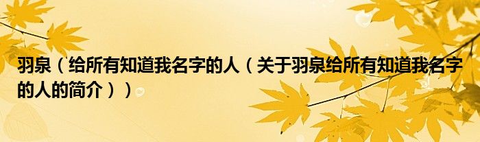 本文關(guān)于羽泉 給所有知道我名字的人的簡(jiǎn)介就講解完畢,希望對(duì)大家有所幫助。