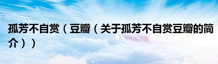大家好,孤芳不自賞 豆瓣,關于孤芳不自賞 豆瓣的簡介很多人還不知道,現在讓我們一起來看看吧!