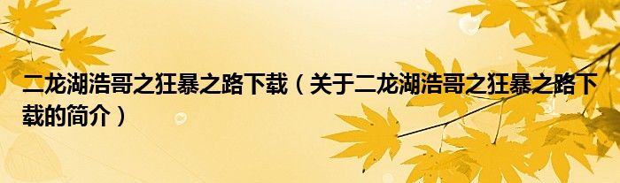 大家好,二龍湖浩哥之狂暴之路下載,關于二龍湖浩哥之狂暴之路下載的簡介很多人還不知道,現在讓我們一起來看看吧!