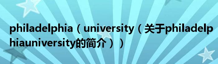 本文關于philadelphia university的簡介就講解完畢,希望對大家有所幫助。
