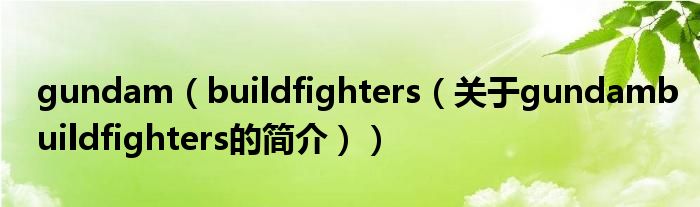 本文關于gundam build fighters的簡介就講解完畢,希望對大家有所幫助。