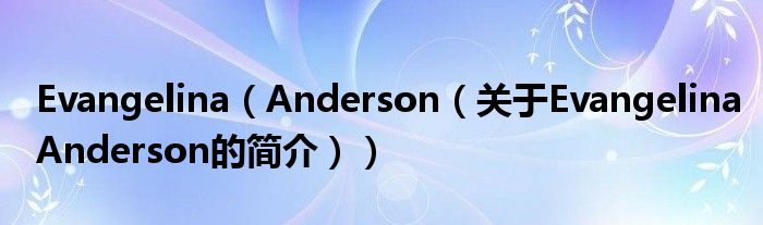 本文關于Evangelina Anderson的簡介就講解完畢,希望對大家有所幫助。
