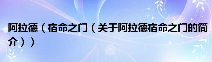 大家好,阿拉德 宿命之門,關于阿拉德 宿命之門的簡介很多人還不知道,現在讓我們一起來看看吧!