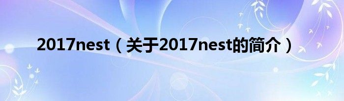 大家好,2017nest,關于2017nest的簡介很多人還不知道,現在讓我們一起來看看吧!