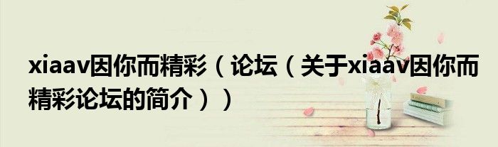 大家好,xiaav因你而精彩 論壇,關于xiaav因你而精彩 論壇的簡介很多人還不知道,現在讓我們一起來看看吧!