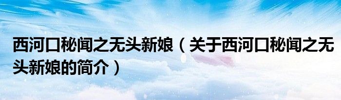 本文關于西河口秘聞之無頭新娘的簡介就講解完畢,希望對大家有所幫助。