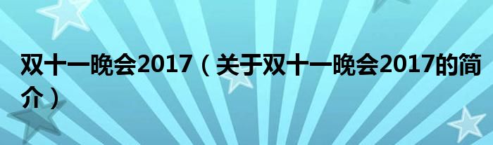 本文關于雙十一晚會2017的簡介就講解完畢,希望對大家有所幫助。