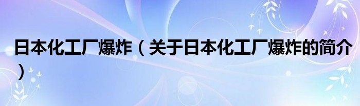 本文關(guān)于日本化工廠爆炸的簡介就講解完畢,希望對大家有所幫助。