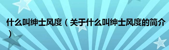 本文關于什么叫紳士風度的簡介就講解完畢,希望對大家有所幫助。