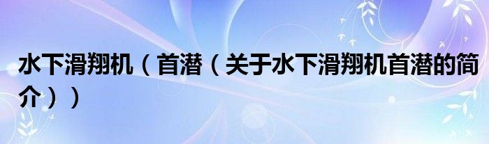 本文關于水下滑翔機 首潛的簡介就講解完畢,希望對大家有所幫助。