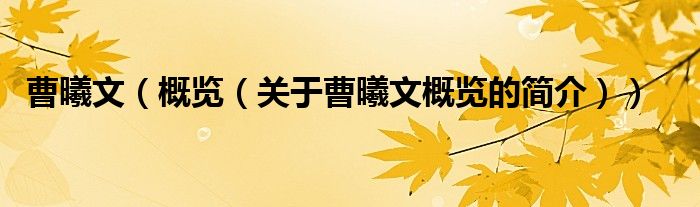 本文關于曹曦文 概覽的簡介就講解完畢,希望對大家有所幫助。