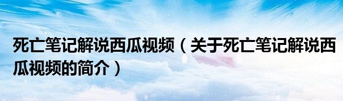 本文關(guān)于死亡筆記解說(shuō)西瓜視頻的簡(jiǎn)介就講解完畢,希望對(duì)大家有所幫助。
