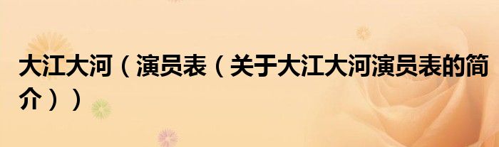 大家好,大江大河 演員表,關于大江大河 演員表的簡介很多人還不知道,現在讓我們一起來看看吧!