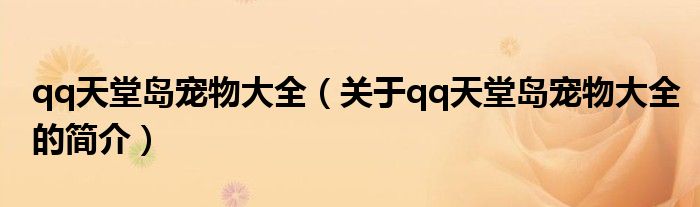 本文關于qq天堂島寵物大全的簡介就講解完畢,希望對大家有所幫助。