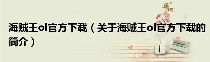 大家好,海賊王ol官方下載,關于海賊王ol官方下載的簡介很多人還不知道,現在讓我們一起來看看吧!