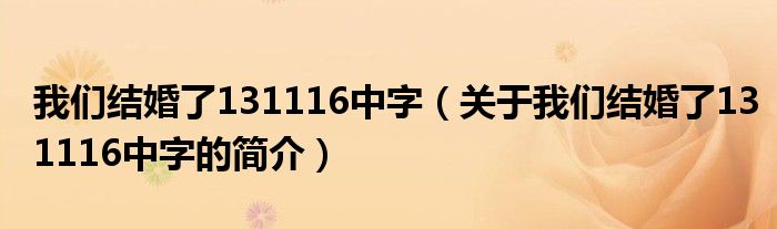本文關(guān)于我們結(jié)婚了131116中字的簡介就講解完畢,希望對大家有所幫助。