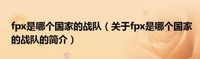 本文關于fpx是哪個國家的戰隊的簡介就講解完畢,希望對大家有所幫助。