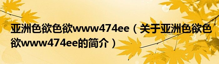 本文關(guān)于亞洲色欲色欲www474ee的簡介就講解完畢,希望對大家有所幫助。