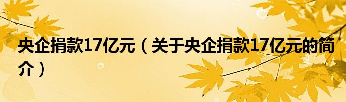 本文關于央企捐款17億元的簡介就講解完畢,希望對大家有所幫助。