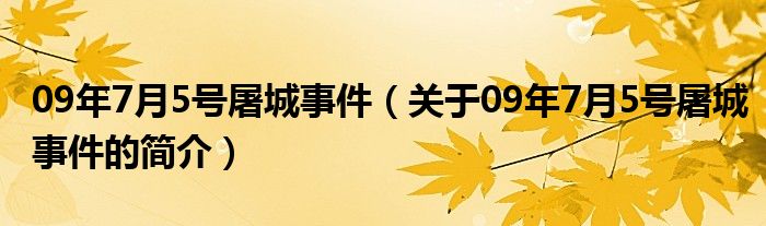 本文關于09年7月5號屠城事件的簡介就講解完畢,希望對大家有所幫助。