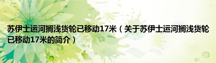 本文關于蘇伊士運河擱淺貨輪已移動17米的簡介就講解完畢,希望對大家有所幫助。