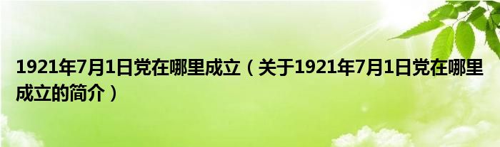 本文關于1921年7月1日黨在哪里成立的簡介就講解完畢,希望對大家有所幫助。