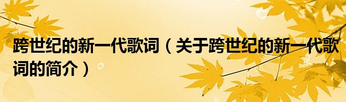 本文關于跨世紀的新一代歌詞的簡介就講解完畢,希望對大家有所幫助。